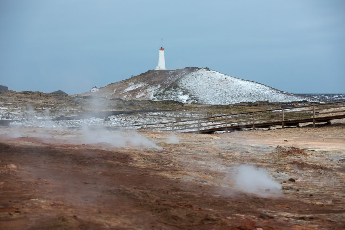 Enjoy airport pick-up and hotel drop-off (or vice versa) for a seamless experience. Highlights include the Bridge Between Continents, bubbling Gunnuhver hot springs, Iceland’s oldest lighthouse with dramatic cliff views, newly formed lava fields from recent eruptions, and a drive through Grindavík—the fishing town recently evacuated due to volcanic activity. We also stop at the Blue Lagoon for photos.
